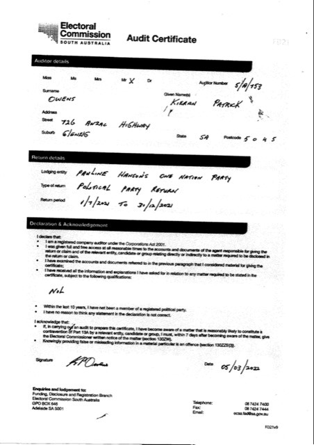 Registered political party detailsPolitical partyPauline Hanson's One NationAgent full nameJennifer Game
