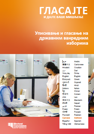 Уписивање и гласање је лако. Информације на српском језику о државним изборима Јужне Аустралије и како да се упишете и гласате могу да се добију овде:![]()